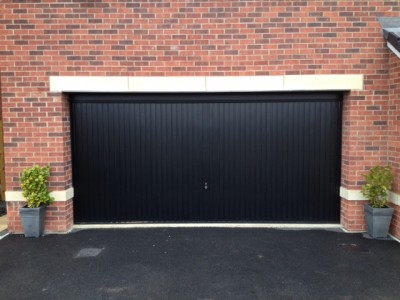 Our customer had a large double metal garage door which they were finding hard to lift and bearing in mind it's age too, they decided to replace it. They contacted us to arrange a free no obligation quotation and our surveyor met with them to discuss their requirements. Having decided that they wanted something that was easy to use, secure and could be as draught free as possible they had looked at the Alluguard range on our website. They were shown samples and they decided it was definitely the door for them. They chose black as their colour. The door comes with an electric operator and they were thrilled not to have to get out of the car, especially on dark nights and were able to drive straight into their garage. The insulation and draught proofing would also help with the heating situation in the room above the garage.They were very pleased with the finished job and it looks lovely too.