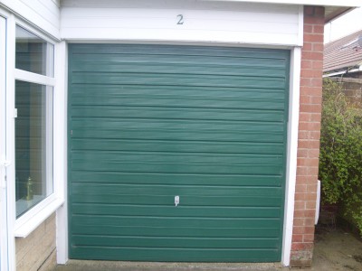 This up and over garage door was replaced so that our customer could have the necessary space in front of her garage allowing easy parking without the worry of the garage door opening and hitting cars on the drive. We replaced the up and over garage door with a manual roller garage door in their favourite colour - green, at their home near Longbenton.