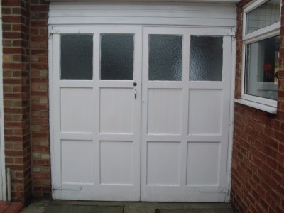 Our customers had an old Wessex GRP up and over garage door which they wished to replace as it was some years old. Having looked at our website they decided that they would like to have a fully finished garage door in white and chose the Sheraton as the panelled design matched their front entrance door which we were pleased to supply and install at their property in Bedlington.